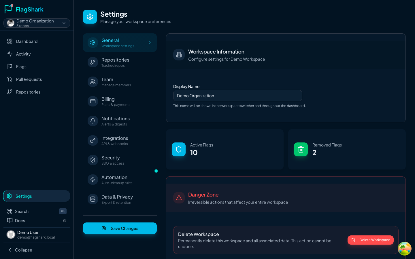 .flagshark.yaml- Highest priority - Organization defaults - Set in FlagShark dashboard